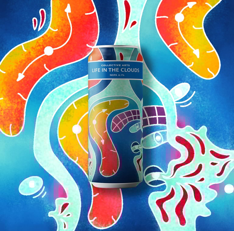 To create a visually striking illustrated beer label for Collective Arts that captured the dreamy, abstract feeling of the beer’s name, Life in the Clouds.